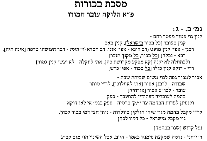 (brief review notes, meant for those who have already learned the Daf)